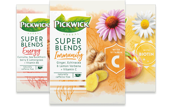 Pickwick Super Blends is een heerlijke reeks cafeïnevrije kruidentheeën.
